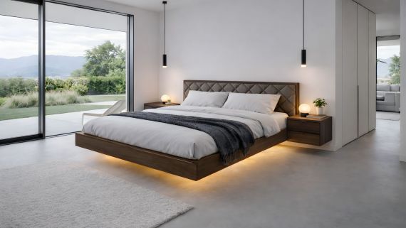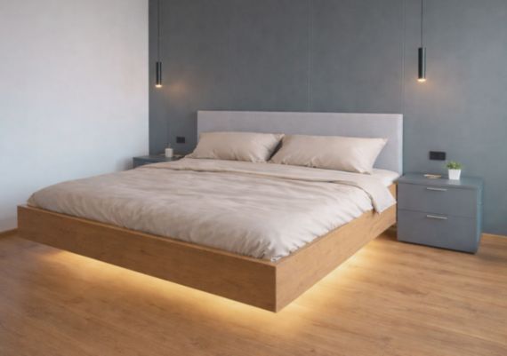 Postel LEVITO vypadá, jako by se vznášela nad podlahou. Není to ale žádný trik – jen chytré konstrukční řešení, které zůstává skryté.Jak funguje levitující efekt