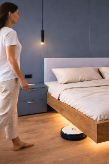 Díky volnému prostoru pod postelí se pod ní dostanete snadno mopem i robotickým vysavačem.